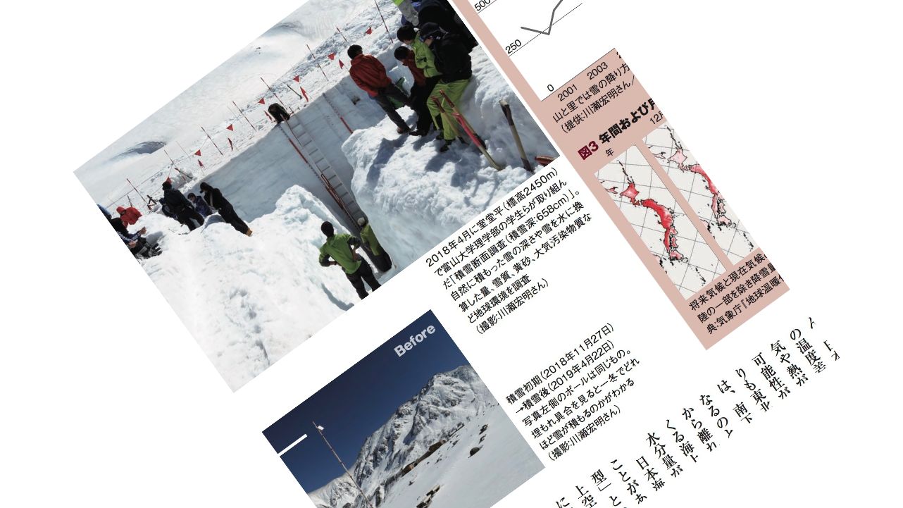 富山大学 News Letter 2021夏号(2021.07)富山大学 News Letter 2021夏号に、積雪調査が紹介されました。これは、富山大学のウェブ「未来を拓く:おもしろい授業・おもしろい研究」で紹介されたものが、Pick Up!として選ばれて紹介されました。 |