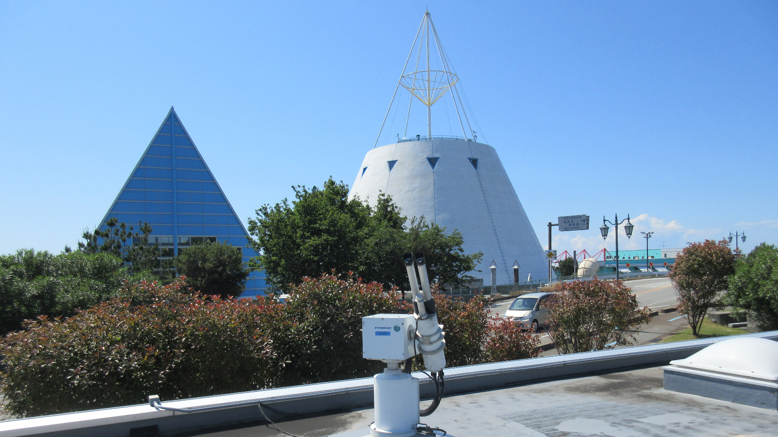 私(青木)が准教授時代に、青木研究室の研究紹介として、KNBで放送されたYouTube動画です。左の写真は、理学部屋上で観測しているスカイラジオメーター(太陽放射観測)について、学生に説明している撮影風景です。