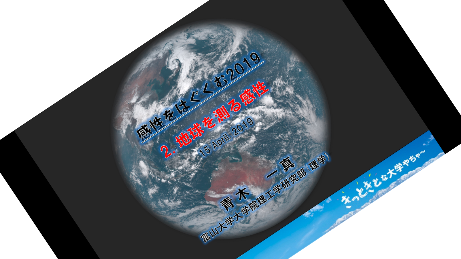 YouTube 富山大学チャンネル:「アルスの礎」(2019.11.07放送)チューリップテレビで放送された「アルスの礎」で、教養教育の授業「感性をはぐくむ」が紹介されました。私は、「地球を測る感性」についての講義を担当しています。今一度、地球の感性を考えてみるのはどうでしょうか? |
