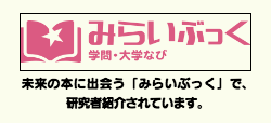 みらいぶっく:未来への本に出会う(2020.05)CSTI(内閣府/総合科学技術・イノベーション会議)事業の一環で、中高生向け「みらいぶっく:未来への本に出会う(河合塾)」の中で、環境動態解析の研究者のひとりとして私(青木)が紹介されています。みなさん見て下さい。 |