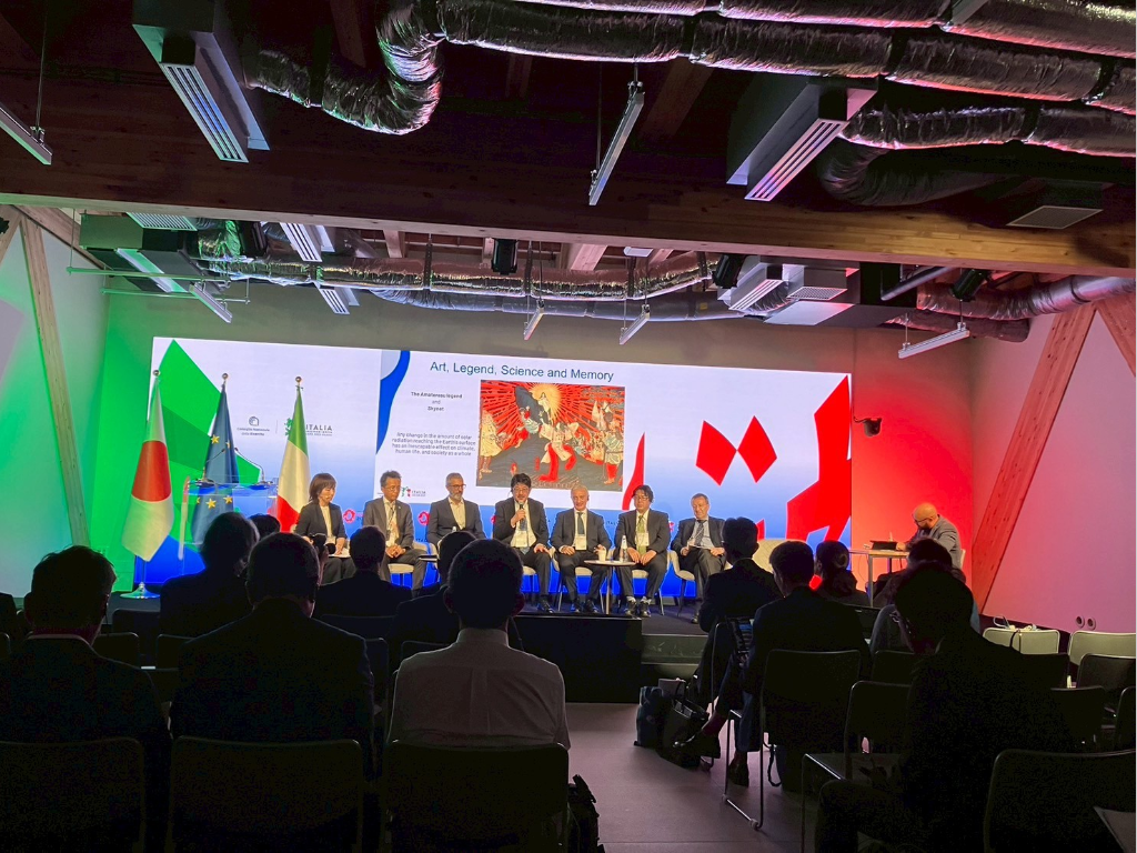 2025年9月19日、大阪・関西万博2025のイタリア館で、イタリア国立研究評議会(CNR)の地球システム科学・環境技術部門(DSSTTA)が主催したイベント「Conoscere per proteggere – Knowledge as the key to protection(守るために知る)」に参加・発表してきました。生物多様性、海洋、極域、気候変動、自然災害という5つの環境テーマについて、日伊の専門家が集まり知見を共有しました。私とCNRのCairoさんとで「気候変動」の前半を担当し、30年以上の日伊はもちろん国際的な太陽放射観測ネットワークについて、「記憶 としての知識」をキーワードに、環境変化への理解と、地球規模の課題に対するレジリエンス の向上に向けた科学的対話を展開してきました。朝から夕方までイタリア館に缶詰だったので、博覧会の様子は良くわかりませんでしたが、とにかく、地下鉄から始まり博覧会場内の人の多さにびっくりでした。このようなイベントで、我々の研究を紹介する機会を頂き関係各位に感謝しております。みなさま、今後ともよろしくお願いします。