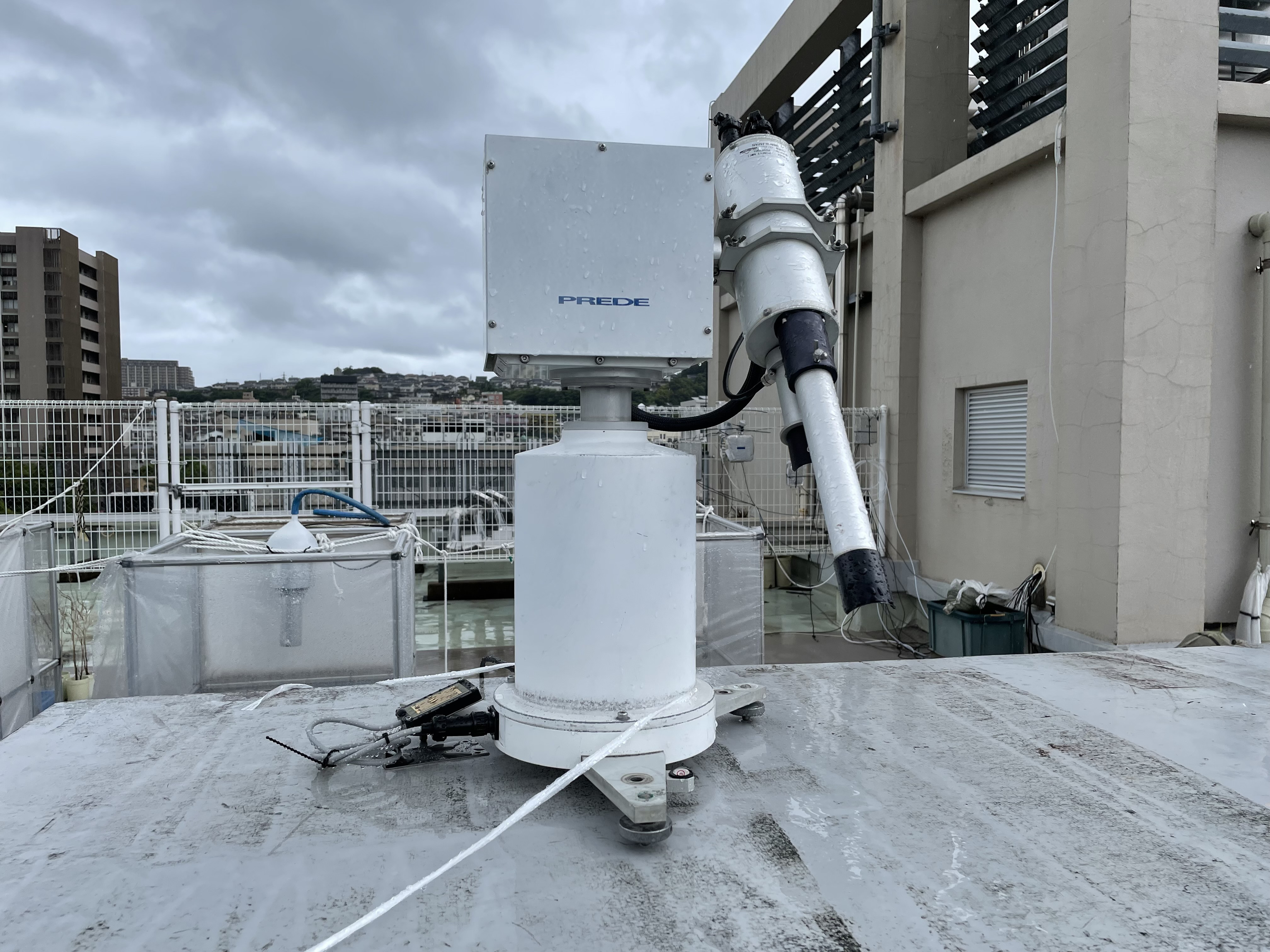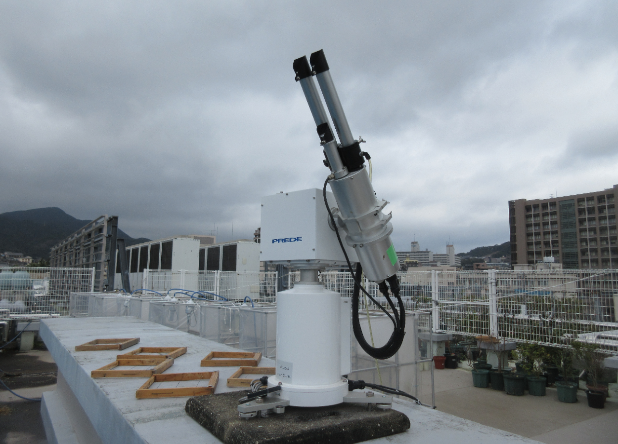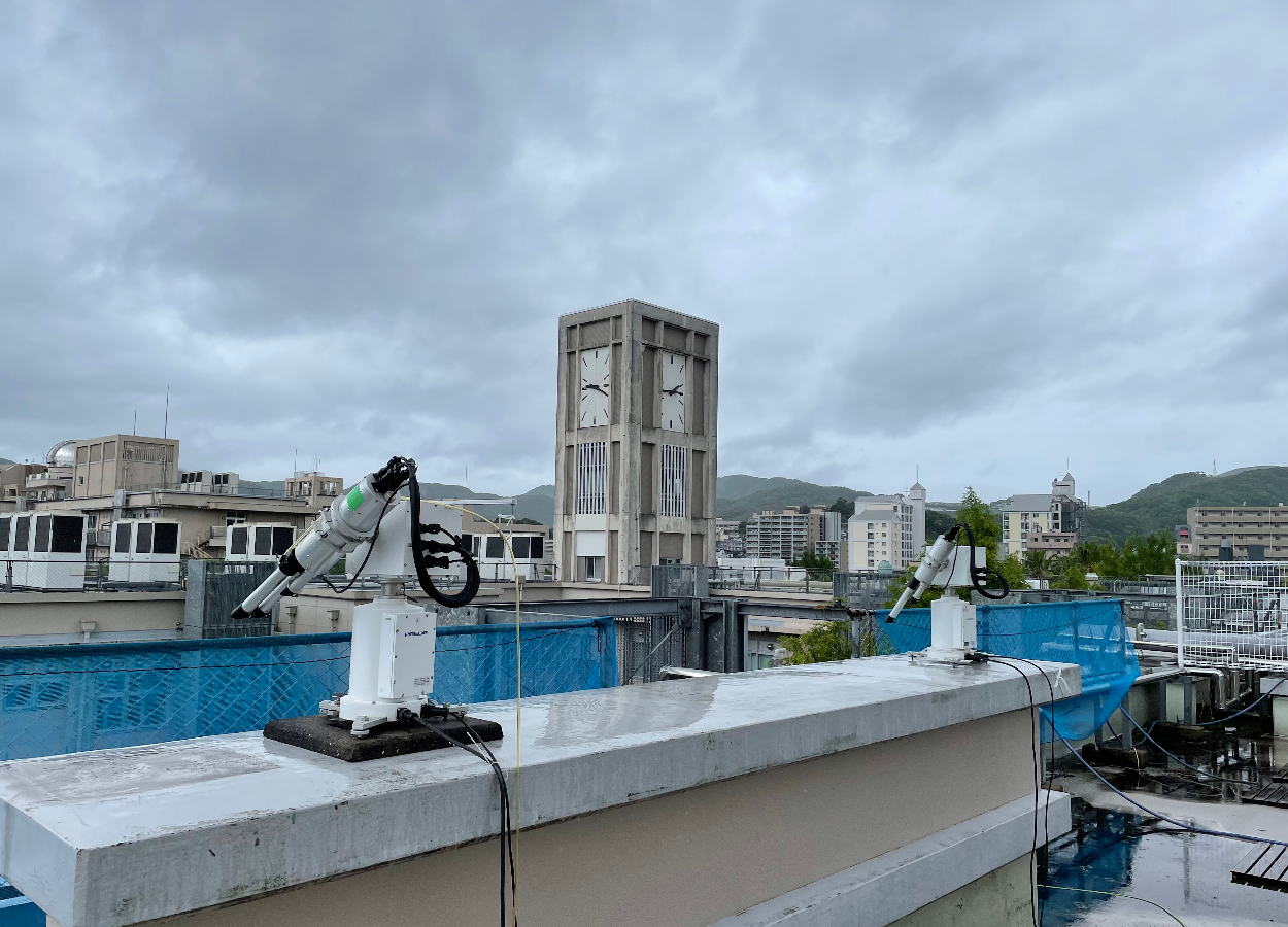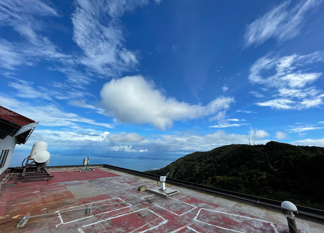 長崎大学との共同研究で、標高1100mの雲仙ロープウェイの雲仙仁田峠駅の屋上で大気エアロゾルの太陽放射観測を開始しました。これで、長崎大学と雲仙で高度差観測を行うことが出来ますし、九州の火山噴煙の影響や越境大気汚染などの観測が出来るかと思います。台風の影響や天候を眺めながらでしたが、ようやく観測機器を設置することが出来ました。雲仙ロープウェイ並びに関係各位のご協力ありがとうございました。