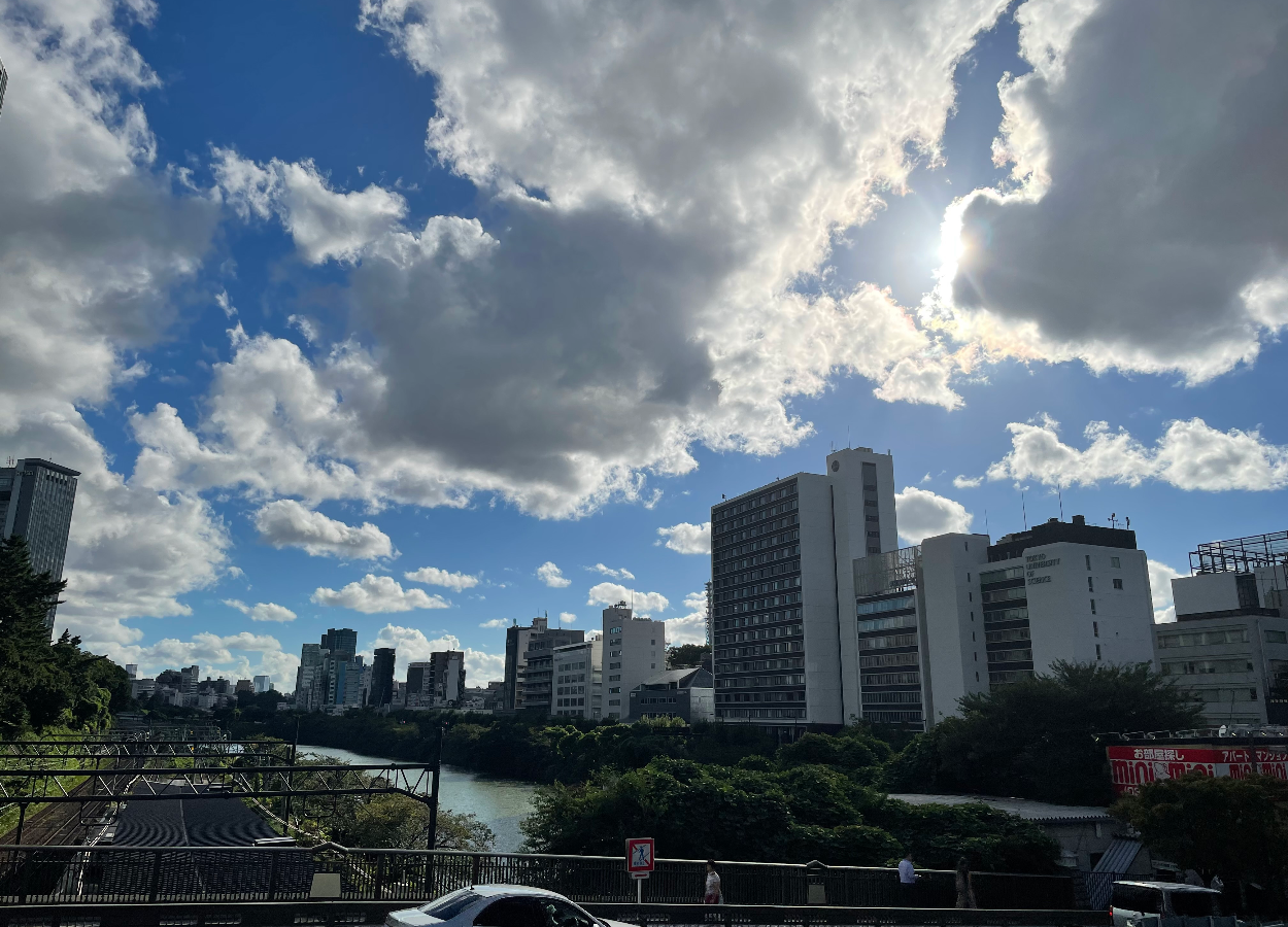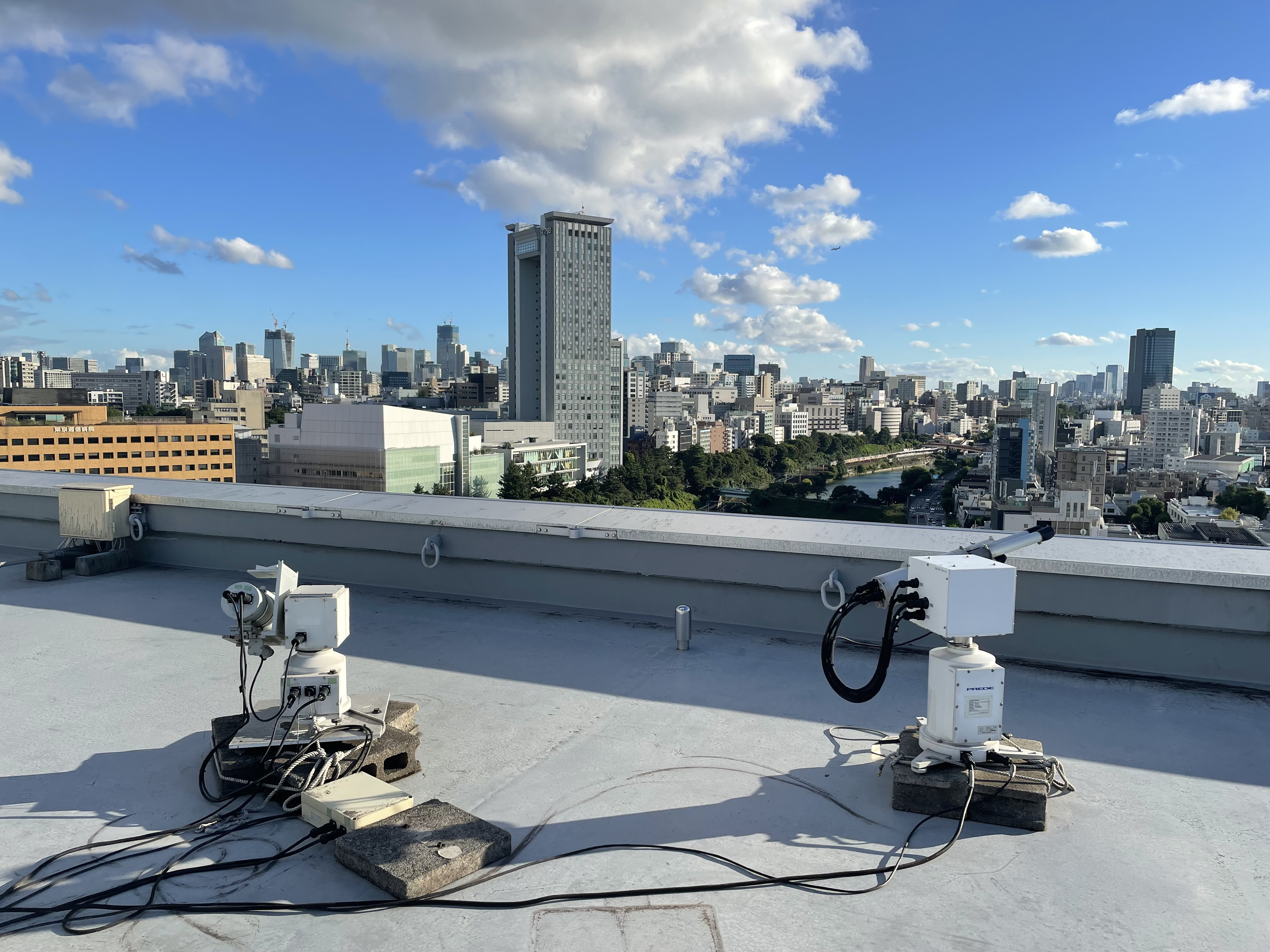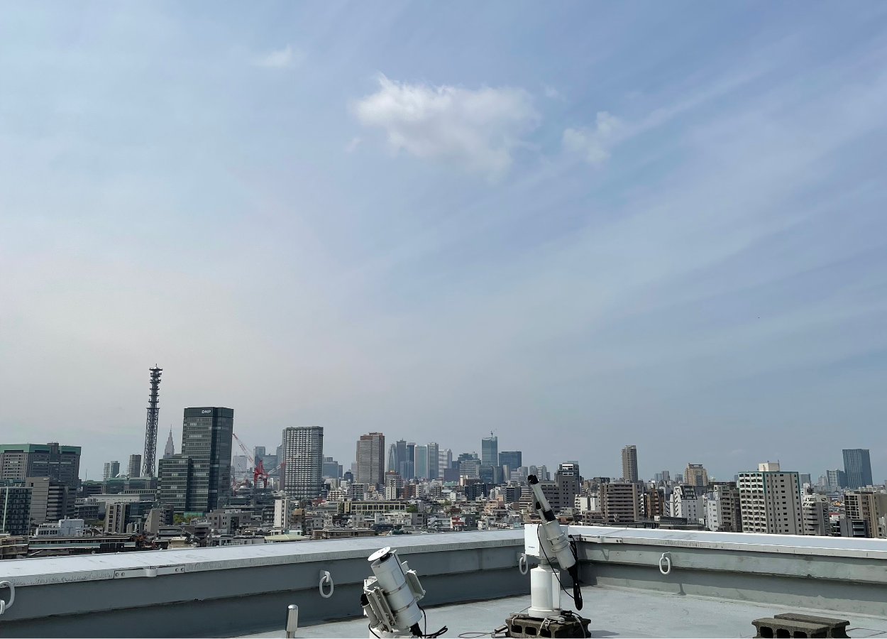 夕方になってしまいましたがNICTをあとに、東京理科大学の観測機器のメンテナンスのため、神楽坂に出没しました。学生時代から17階の校舎の屋上でエアロゾルの光学的特性の観測しています。そろそろ30年になると思うと感無量ですし、理科大は私の研究の原点ですので感謝しかありません。今日は、遠いとは言え台風による風が強く、屋上からの雲の流れを観察していると面白かったです。今日のように南風の時は、羽田に着陸する飛行機が近くを飛ぶので、昔とは違った風景で新鮮です。二機が平行して降りていく姿を見てワクワクするのは私だけでしょうか。。。