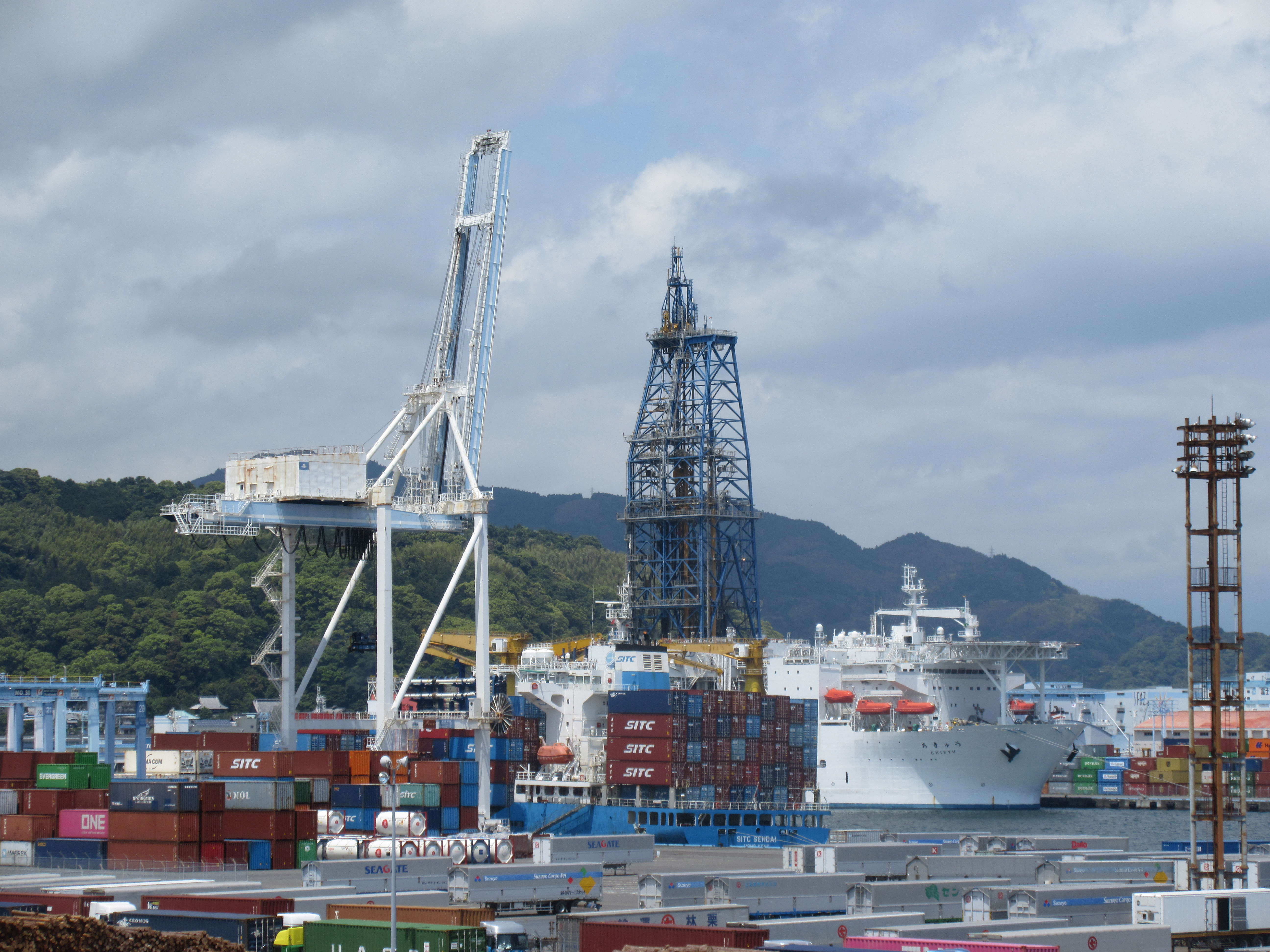 JAMSTECの海洋地球研究船「みらい」のMR22-03の観測航海が無事終了しました。ひとまず当分観測がないので観測機器の撤収のため、清水港に行ってきました。このところ清水ばかりで、「みらい」の母校である関根浜(青森県むつ市)が懐かしく思われますが、このような状況下ではしょうがないのでしょうか。いつものように、隣の埠頭には地球深部探査船「ちきゅう」がど〜んと停泊していました。やはりでかい!