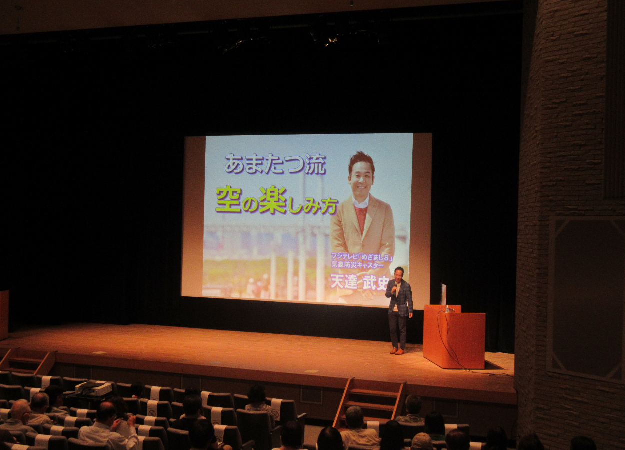 魚津市制70周年記念イベント「蜃気楼フォーラム 〜海と空を楽しむ〜」に参加してきました。ワークショップや高校生の舞台劇「いかせのうろきんし」、気象予報士の天達さんの講演があり、その後、天達さんらとパネルディスカッションを行いました。新川文化ホールには、多くの蜃気楼を愛する魚津市民が集まり、楽しい時間を過ごすことが出来ました。会場に来られた方のほとんどが、蜃気楼を見たことがあるとのこと、さすが魚津です。私は今回、パネルディスカッションの進行役をつとめさせて頂き、「みらいの天気とみらいの蜃気楼」と題して、私を含め5名のパネリストと魚津が100周年を迎える30年後について、蜃気楼からみらいを語り合いました。どんなみらいが待っているのでしょうか。今度、天達さんが魚津に来られるときは、蜃気楼が見られることを祈りつつ。みなさま、おつかれさまでした。