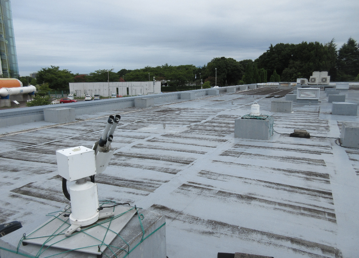 天気予報とにらめっこしながら、前日の夜までは少なくとも13日は曇りの予報だったので、最悪、半日ぐらいは雨は降らないと判断し、長崎へ行くことにしました。朝起きてレーダーを観たら、九州全域で雨・雨・雨。冷静に考えると梅雨に入ったばかりなので、久しぶりに判断が鈍りました。とは言え、観測機器を設置し、早く観測を再開したかったので良かったかと。ただ、雨より苦労したのは、修理後の測器は仕様が変わったため、ノートパソコンの設定にかなり戸惑いました。良い勉強になりました。これから約1ヶ月、長崎大学で相互比較観測を行い、その後、雲仙岳に設置し、新しい観測を始めたいと思います。写真は雨なので、下を向いて休んでいます。
