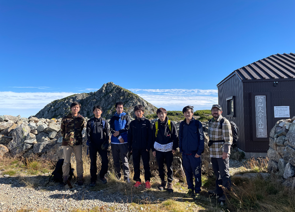 昨年は天候やコロナの影響で開催出来ませんでしたが、台風14号の通過後、天候が心配されましたものの、2年ぶりに山岳大気実習を行うことが出来ました。とは言え、登っている時は、寒さと雨が降ったり雪がちらついたりで心配しましたが、無事に立山・浄土山の富山大学立山施設に到着しました。写真の集合写真のように、午後からは雲海が広がる気持ちの良い天気でした。浄土山では、気象・背票観測や大気放射観測など、学んでもらいました。今回は、さまざまな山岳気象を体験出来、雷鳥も見ることが出来たようで、学生にとってはよい実習になったのではないでしょうか。
