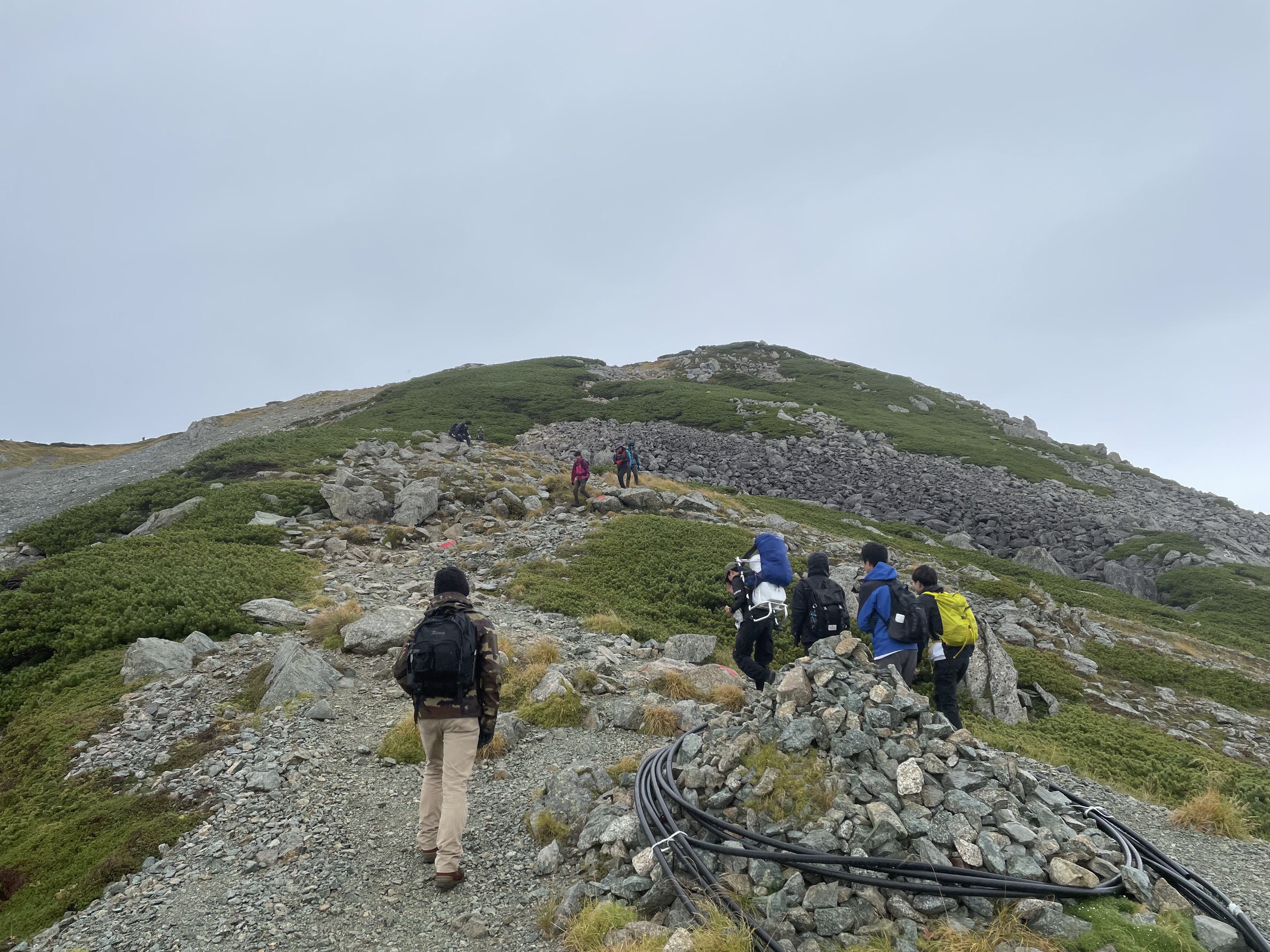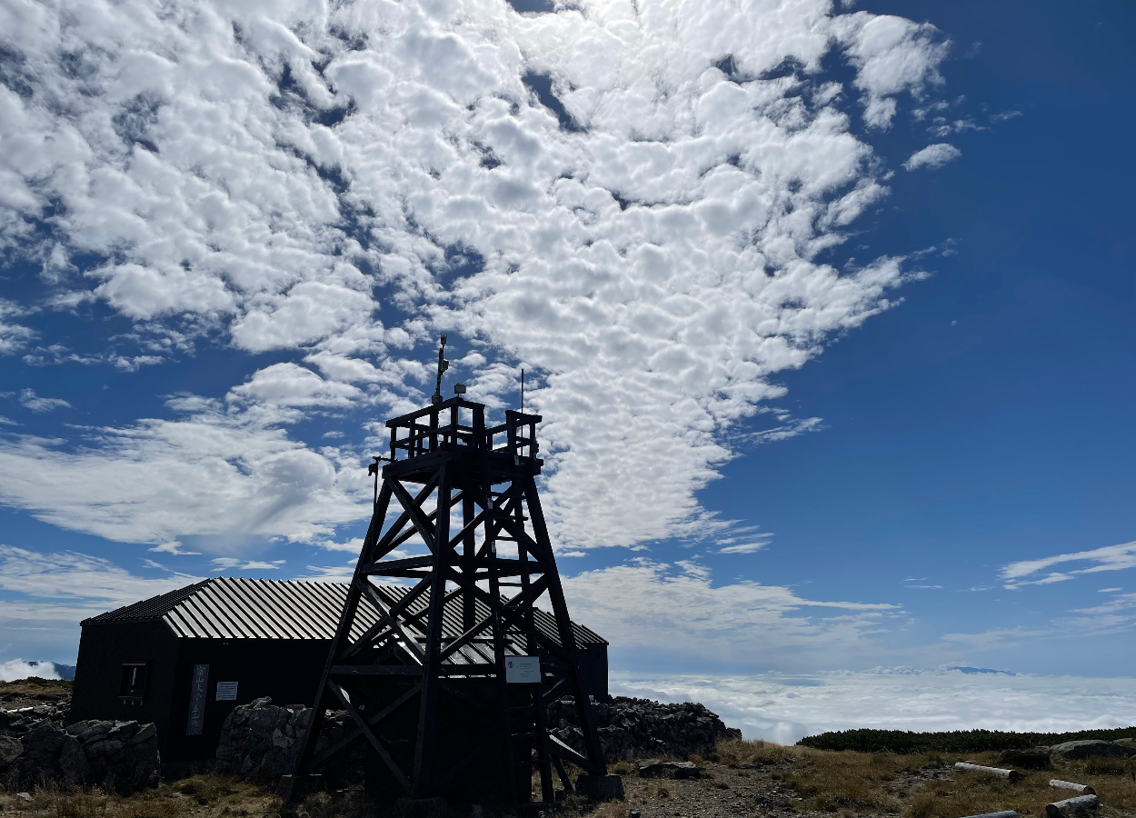 野外実習の一環もかねて、大気放射観測を再開しました。本研究は、科研費B「中部山岳域における気候変動影響評価の分野横断的定量データの構築:2021-2025」(代表:青木)として、標高2839mの立山・浄土山南峰にある富山大学立山施設で観測を開始しました。コロナの影響で機器の納品が1年遅れとなりましたが、以前の測器から最新型にして測定再開です。いつもは午後から雲の中の浄土山ですが、今日は午後からは想像以上に晴れてくれたので、測器の検証と観測の良いデータが取得出来たのではないかと期待しています。立山はそろそろ冬になりますが、あとどれくらいデータが取れるのか。。。