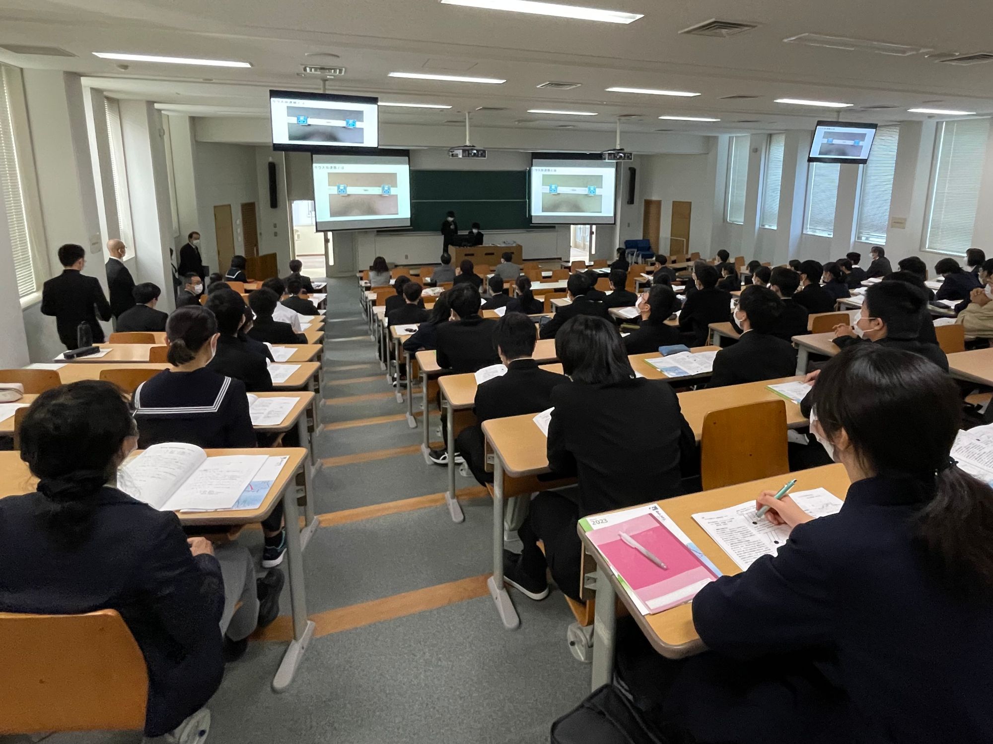 いつもより課題研究の時間が限られた中で、それぞれの課題に取り組んだ探求科学科2年生が、一所懸命に研究発表してくれました。理系は、数学(4)・物理学(2)・化学(2)・生物学(2)の10課題の発表でした。それぞれ、自分たちの興味からなぜなにの探究心を持って、非常によく取り組んでいたかと思います。これから1年は受験勉強に追われるかと思いますが、この課題研究の経験を大切に好奇心と探究心を忘れずに大学に進学して欲しいと思うばかりです。