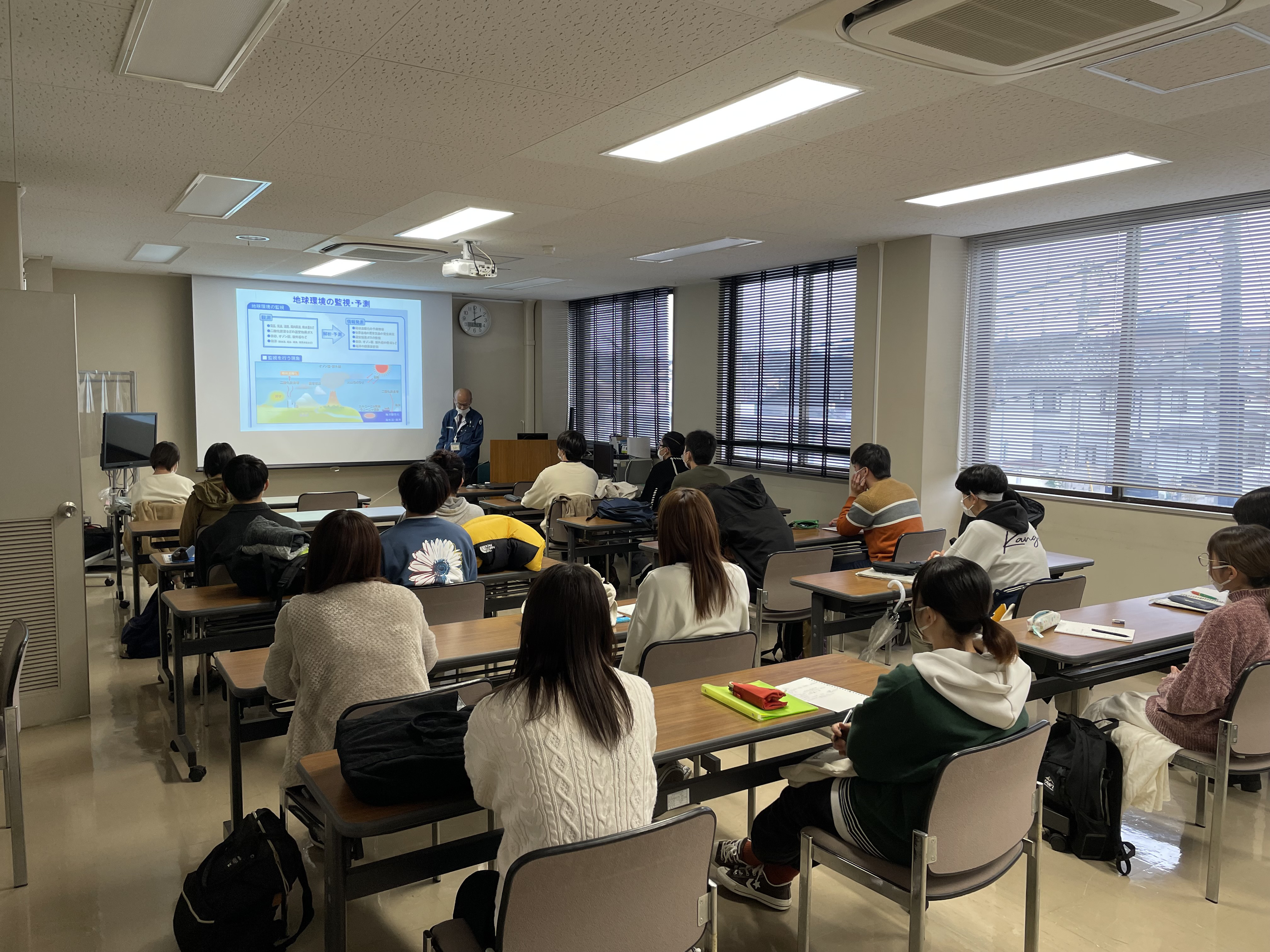 理学部生物圏環境科学科は、今年度(2022年度)の入学生から理学部自然環境科学科に名称変更しました。ただし、2年生以降は学科名はそのままです。その最後の生物圏環境科学科2年生の授業の一環として、「富山地方気象台」に行き気象庁の業務や防災・減災などについて勉強してきました。なかなか収束しない状況でしたが、対面開催して頂いた気象台のみなさま、ありがとうございました。実際に現場で働かれている生の声や気象観測の様子など、刺激になったかと思います。今後の卒業研究などに活かしてくれることを願います。