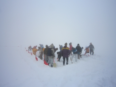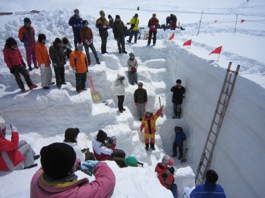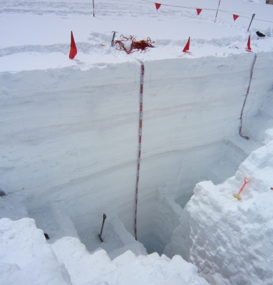今年の立山・室堂平の積雪は、6m87cm(4月18日現在)でした。雪の大谷は、15mでした。今年の参加者は、総勢60名でした。関係各位、お疲れ様でした。今年は、3月の黄砂層もはっきり見え、典型的?な積雪層が観察できました。これからの解析結果が楽しみです。