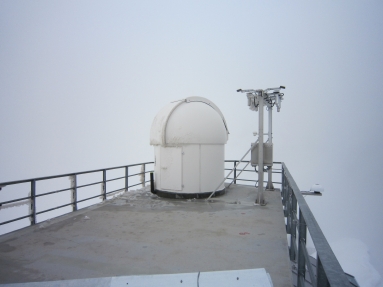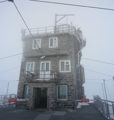 ユングフラウヨッホの研究所。雲のため、まわりの景色が見えなく残念(Sphinx Lab.: 3580m)。普段、よく立山に登っているが、初めて3500mを越えると、少し息苦しい。。。