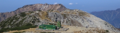 梅雨前線発達の時でしたが、2010年7月15日に改修工事が無事に始まりました。9月下旬の完成予定で、現在は、緑色の小屋ですが、リニューアル後は、茶色に変身します。