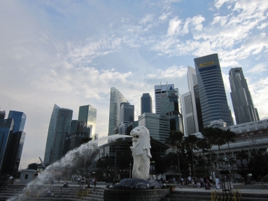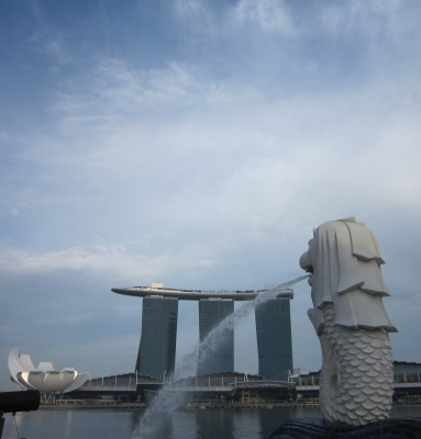 マーライオン。地震がないのでしょうね、後ろのビル。。。