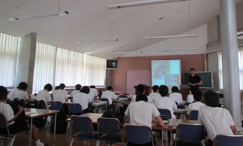 - 富山大学理学部・氷見市連携研究室市民講座:平成24年度「ひみっ子ラボ」の講演・実習のため、氷見市旧仏生寺小学校に行ってきました。集まって頂いた中学生ありがとうございました。写真は、この連携研究室の理学部山崎先生の講義風景です。