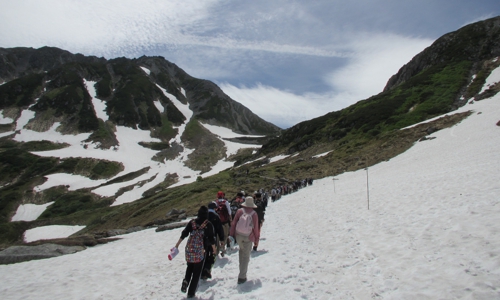- 富山高校第1学年理数科学科のみなさんと立山・浄土山に行ってきました。梅雨も明け、天候にも恵まれ、登山日和だったかと思います。富山市内は、連日30℃を越える日々ですが、まだ、残雪が多く残る登山道を体験し、いろいろな植物や昆虫、山岳地形や雲などを見ながら、この立山実習が良い経験になってくれればと思います。みなさん、お疲れ様でした。