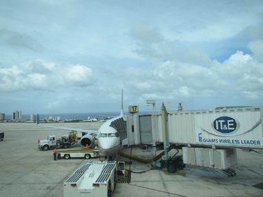 グアムの空港。往復とも小さな飛行機だったためか満席。