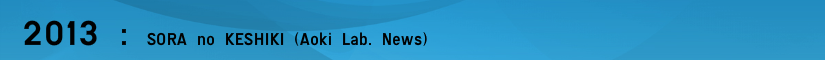 - 2013年10月6日のKNB TV(11時45分から放送)の富山大学キャンパスレポート2013年第7回:TOM'S TV (7)で、青木研究室が紹介されました。その映像が、YouTubeで見ることができます。番組は短いため、ごく一部分しか紹介されませんでしたが、ご覧いただければ幸いです。