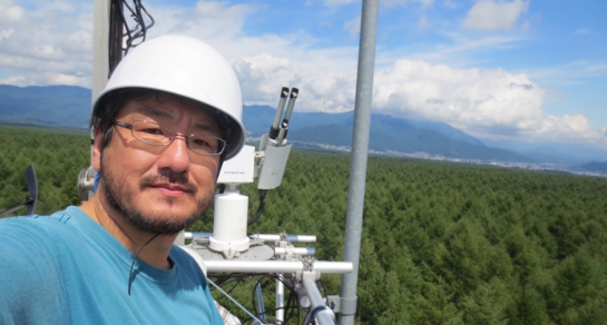 - 第3回GCOM-C1分野共通課題ワークショップ「検証観測・誤差評価」(会場:東海大学山中湖セミナーハウス(写真左下))と富士北麓(写真右下)・富士吉田観測サイトの見学のため、富士山麓周辺に行ってきました。GCOM-C1の打ち上げ後の「検証観測・誤差評価」に関して、いろいろ勉強し、たくさんの宿題をかかえながら帰ってきました。今回は、スカイラジオメーター観測が行われている富士北麓サイトを初めて見学ができ、有意義な出張でした。上の写真は、富士北麓サイトの観測タワーの一番上(約30m)で撮影した私とスカイラジオです。立山から見える富士山は、山麓まで行ったのに雲の中で見られず残念でした。富山から直線距離は近い山梨県ですが、やはり遠いのが実感です。関係者のみなさま、お忙しい中、お世話になりました。
