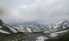- 今年で3回目となる、富山大学理学部地球科学科3年生対象の地球科学特別講義(山岳大気実習)を立山・浄土山で行いました。今年も?開催時期をいつにするか頭を悩ませながら、梅雨明け前の残雪の残る立山(写真:左下)に行ってきました。登りは、いくつかの雪渓を超えながら、雷鳥(写真:右下)にも励まされながら順調に標高2839mの富山大学立山施設に到着。お昼を食べたり、実習を行ったり、周辺を散策したりでしたが、浄土山は雲の中で視界不良。当初より午後から大気が不安定になると予測し、早めに下山する予定でしたが、予想より少し早めに遠くで雷鳴。急遽、下山。登山客が多く、なかなか急いで下山出来る状況ではなかったですが、何とか無事に室堂バスターミナルへ。バスに乗り美女平へ向かうも、所々で雷鳴と豪雨。ケーブルカーが雷のため断続運転だったのと、観光バスが雨量規制でおりられなくて、美女平のターミナルは大混雑。何とか立山駅についたものの、地鉄が運転見合わせ。大変な実習だったと思いますが、身をもって、自然の変化や山の天気を学んでくれたのではと思います。学生のみなさん、本当にお疲れさまでした。今週は、24日に富山高校の立山実習にも行きましたが、室堂周辺豪雨。帰りのバスからの称名滝は、水量の多さにびっくり。そこまで降らなくてもと思うような雨が、このところ各地で被害をもたらしているようですが、自然の猛威を再確認。とにかく、無事に実習を終えることが出来ました。