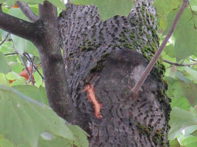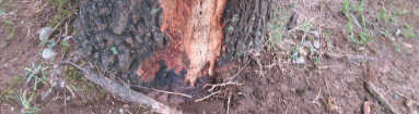 ⑤ だんだん、跡が長くなり、木を回りながら、傷跡が。
