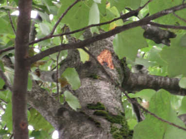 ② 木の上の方の写真。隣の木から移って。ここにから下に?