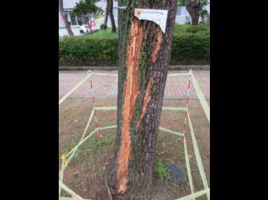 ⑩ 地面へ。本当に人的被害がなくてよかったです。おわり。と思っていたら、これも多分ですが、地中を伝わって、校舎前の外の機械を壊したようで。。。